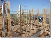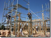 ラフター呼ばれると腕の長い重機で重い材木も一気に上へ運び入れてくれます。 でも・・・当然腕のいいオペレーターさんと建て方大工さんの絶妙な掛け合い でこんな 大きな骨太の柱や杉パネルも見事に立ち上がって行きます。やっぱ職人…