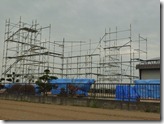 上棟前に足場を組み上げて準備を先に進めています。・・・そうですネもう皆さんご存知 野事とは思いますが今は、殆どこの仕事で足場工事が進められている 先行足場工事です。重機を使って(ラフターと呼ばれる腕が長く伸び重量物を簡単…