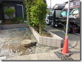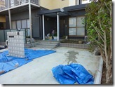 車庫へ車乗り入れ口にコーナー隅切りを設けて出入がスムーズ出来るよう角度も調整しました。 又なにやら二人でどこかに 工夫が出来るか 打ち合わせ中・打ち合わせ中 擁壁ブロック積みと下地工事が完成しました。サァーいよいよアプロ…