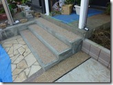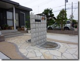 玄関階段アプローチ(乱石・乱張り・リンクストーン・レンガ縁取り・インターロッキング等)配置組みです。 裏門柱とフェンスは、一体感出す為ネットフェンスと格子門柱とでまとまりました。 全面道からは、さりげない目隠し用 サニー…