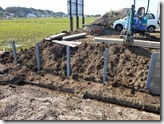 門扉入り口から新築建物の玄関まで約23mの誘導路が完成できました距離がある為土間コンクリートの打設方法も2度に分けた分割打ちにしましたそして宅地の周りを重機で整地して馴らしているところです そして更に同時工事が始まりまし…