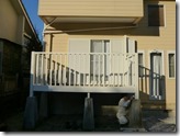 こちらの正面に木質の造作されたウッドデッキが備え付けられていましたご覧の通り人の 背丈ぐらいの位置に設置されていたのがお解かりになれるかと思いますが腐朽菌依る腐食で 床板が抜けてしまうような危険な状態でした木質デッキは木…
