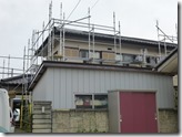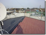 切り妻屋根北側に温水器アングル台が錆びて経年そして劣化腐食も雨漏りの原因の 1つでもあって温水器の撤去と片側全面吹き替を提案ごそしてご理解を頂き 北片側面の吹き替えを工事に入りました材質は既存と同様カラーベスト(セメント…