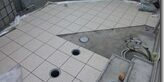 建物から2段の階段を降りると中庭に出られます北欧調の本物のテラコッタは裸足で