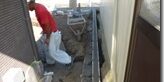 ブロックを積み上げる下地のベースとなる部分の工事に取り掛かっている若手職人さん