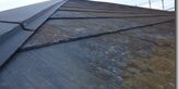 屋根コロニアルの現況少し痛みが目立ちます。隣は軒天と破風も痛んでいるのが判りますネ