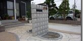 最後に外用手洗い器としてレンガ一体型アンティーク手洗い器を設置そして隣地ブロックには、塗り壁材を