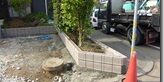 擁壁ブロック積みと下地工事が完成しました。サァーいよいよアプローチ造作が始まります。