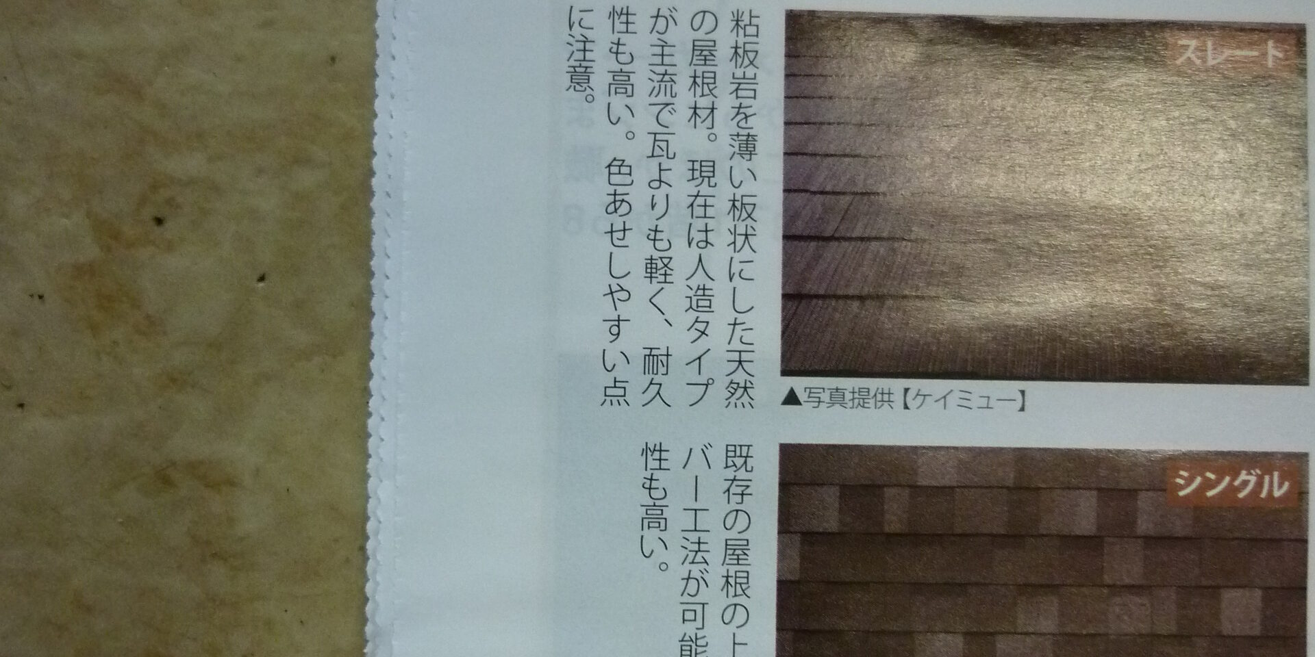 カラーベストとコロニアルは天然スレートを除いて大抵はセメント系人造スレートが使用されています。