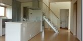 玄関ホールから吹き抜けを通りオープンリビング階段を通り抜けるとダイニングリビング・キッチン