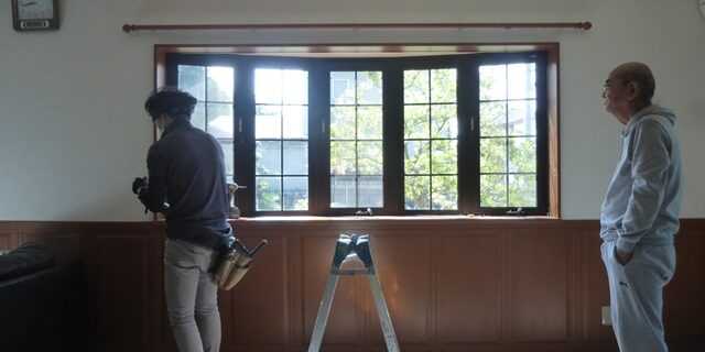 掃き出しサッシで既存規格で一番大きな4枚引き違いサッシの組み込み取り付けです