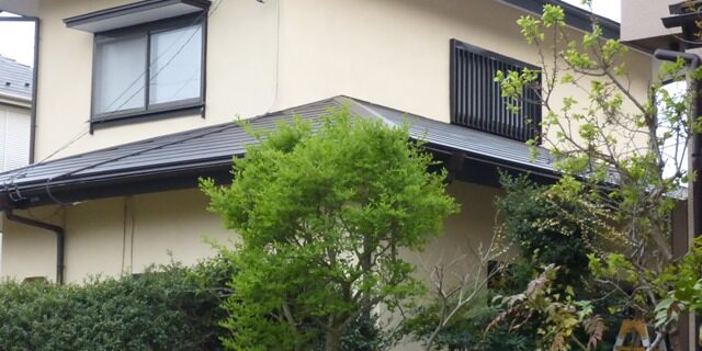 既存下屋根のコロン二アル(カラーベスト)を現状取り付いているコロニアル葺きそのままの