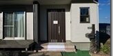 玄関前はこの様なデザインですリビング掃き出しの前にウッドデッキが取り付けてあります南面の為太陽がさんさんと