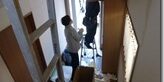 玄関ホールの玄関コンポリアの取り外しと周辺の片付けを済ませてから壁面の小さな破損傷等