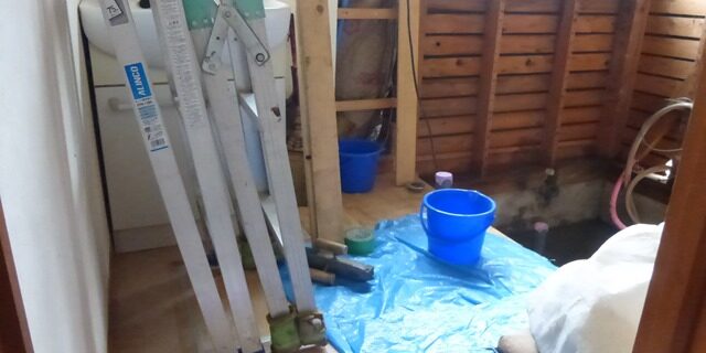 タイル浴室の解体が始まりましたそして同時に洗面室の取り合い部>間仕切壁の