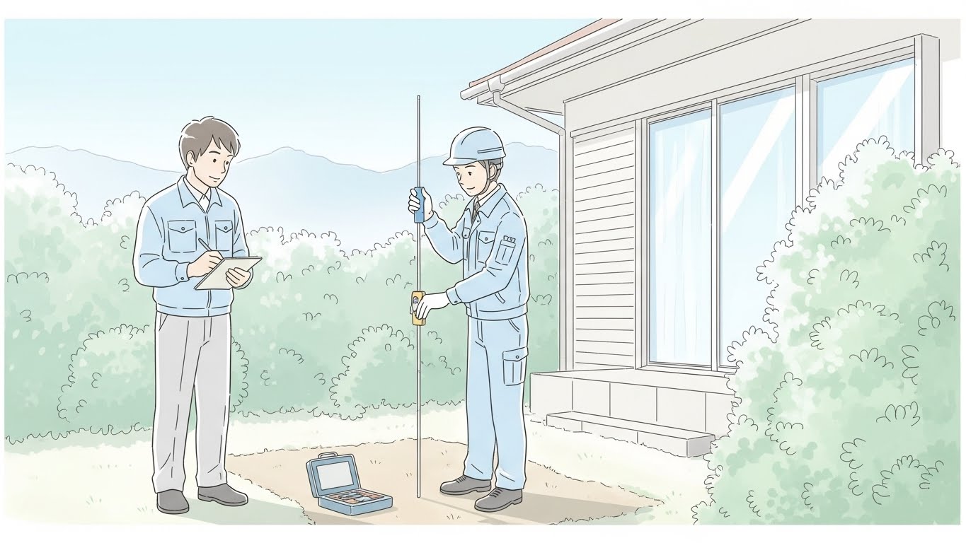 家主様がご同席でない場合は、不動産会社の担当者も交えて物件を内見いたします。 - 現地調査・建物チェック