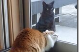 再び我が家お客様担当猫の✿はなちゃんに朝一番のお友達が来店いました