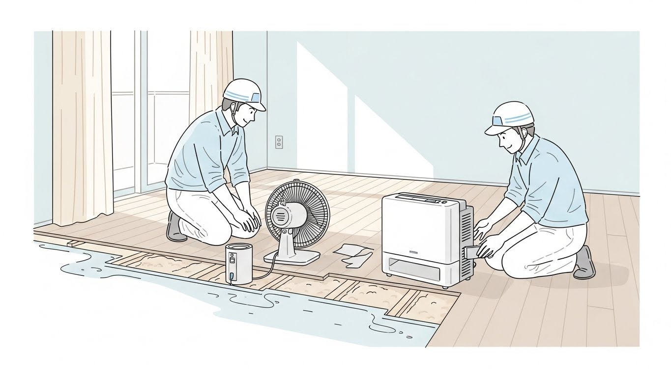 一部の床だけを開口して乾燥・消毒を行うケースもあれば、広い範囲で下地交換が必要になるケースもあります。